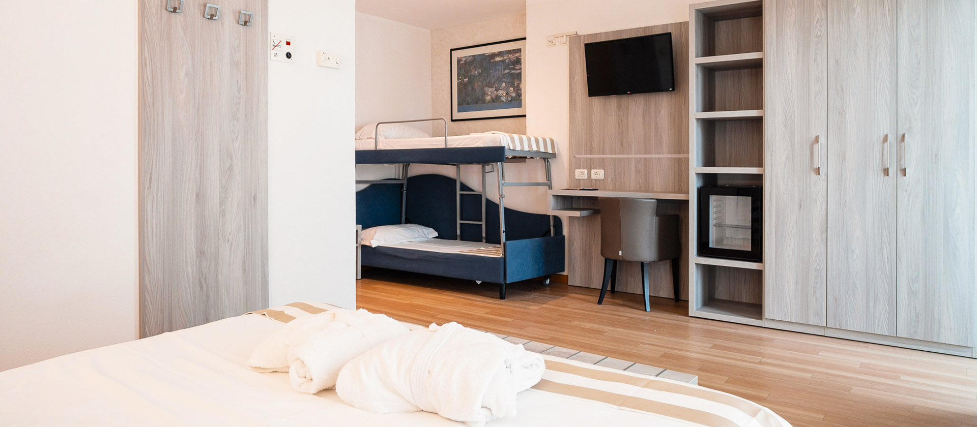 FAMILY ROOMS and SHARKY ROOM available with decorations inspired by the Cattolica Aquarium.