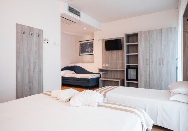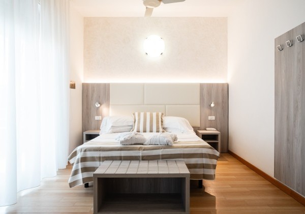 The SUPERIOR SEA VIEW rooms are located at the front of the hotel, parallel to the sea, on the second to fourth floors, and offer panoramic views of the sea and the internal garden. Adult guests also have access to a bathrobe .