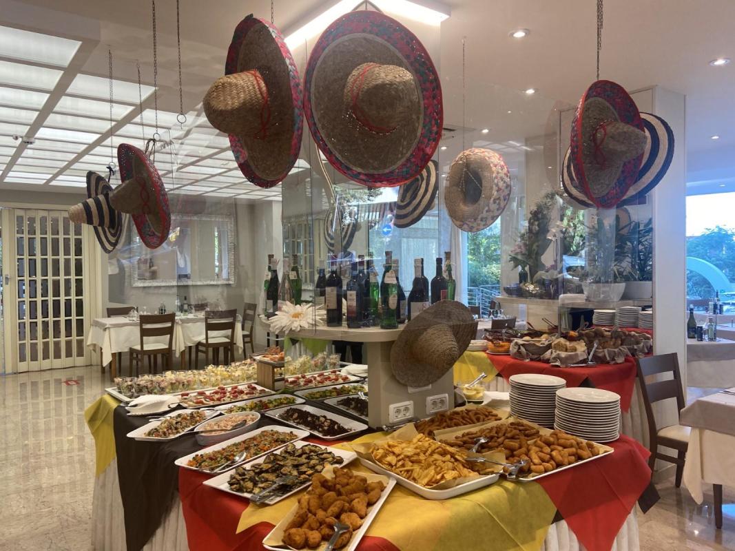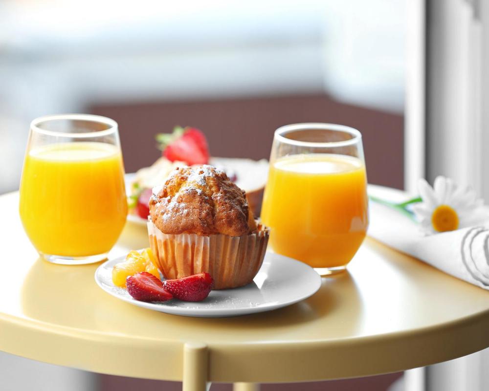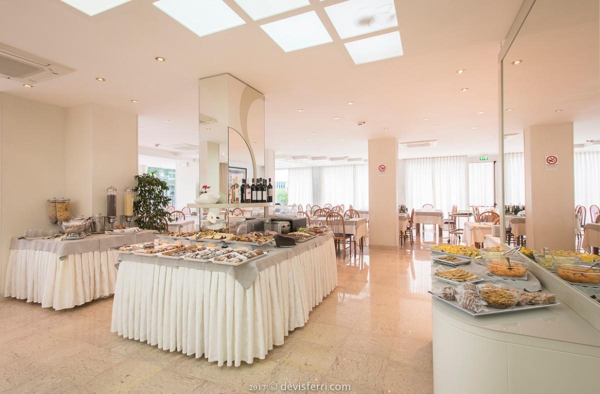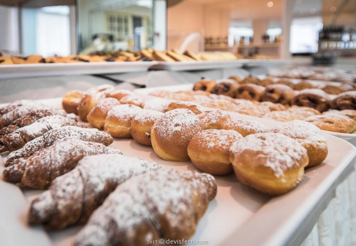 Il buffet propone un'ampia selezione di dolce e salato: cioccolata Nutella, marmellate, fette biscottate, biscotti, dolci fatti in casa e brioche, insieme a salumi, formaggi, panini, yogurt, latte fresco, di soya, di mandarle, di riso, no lattosio, cereali e prodotti biologici. Su richiesta, vengono preparate uova al momento.