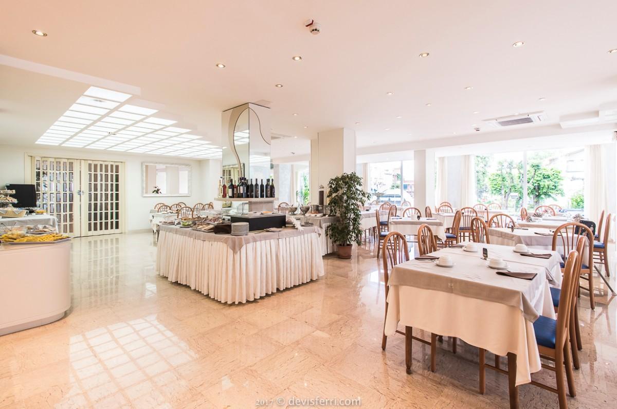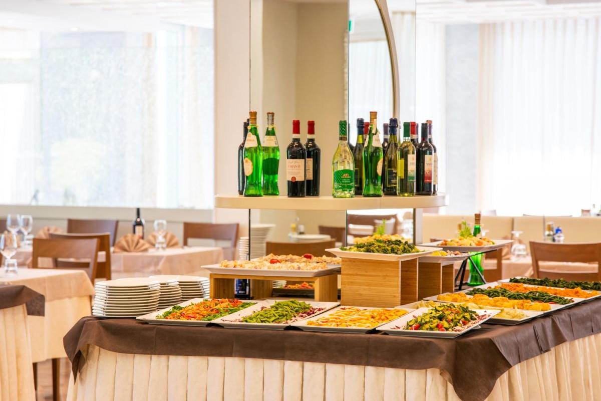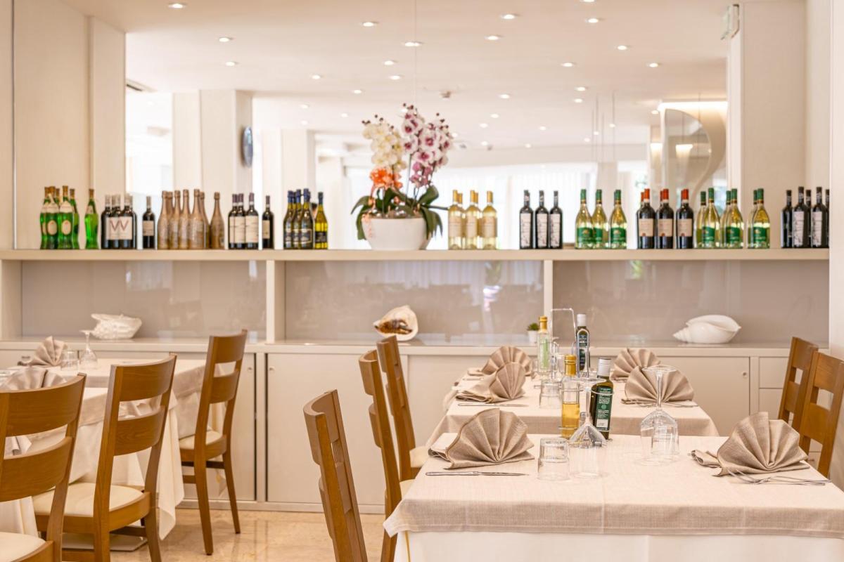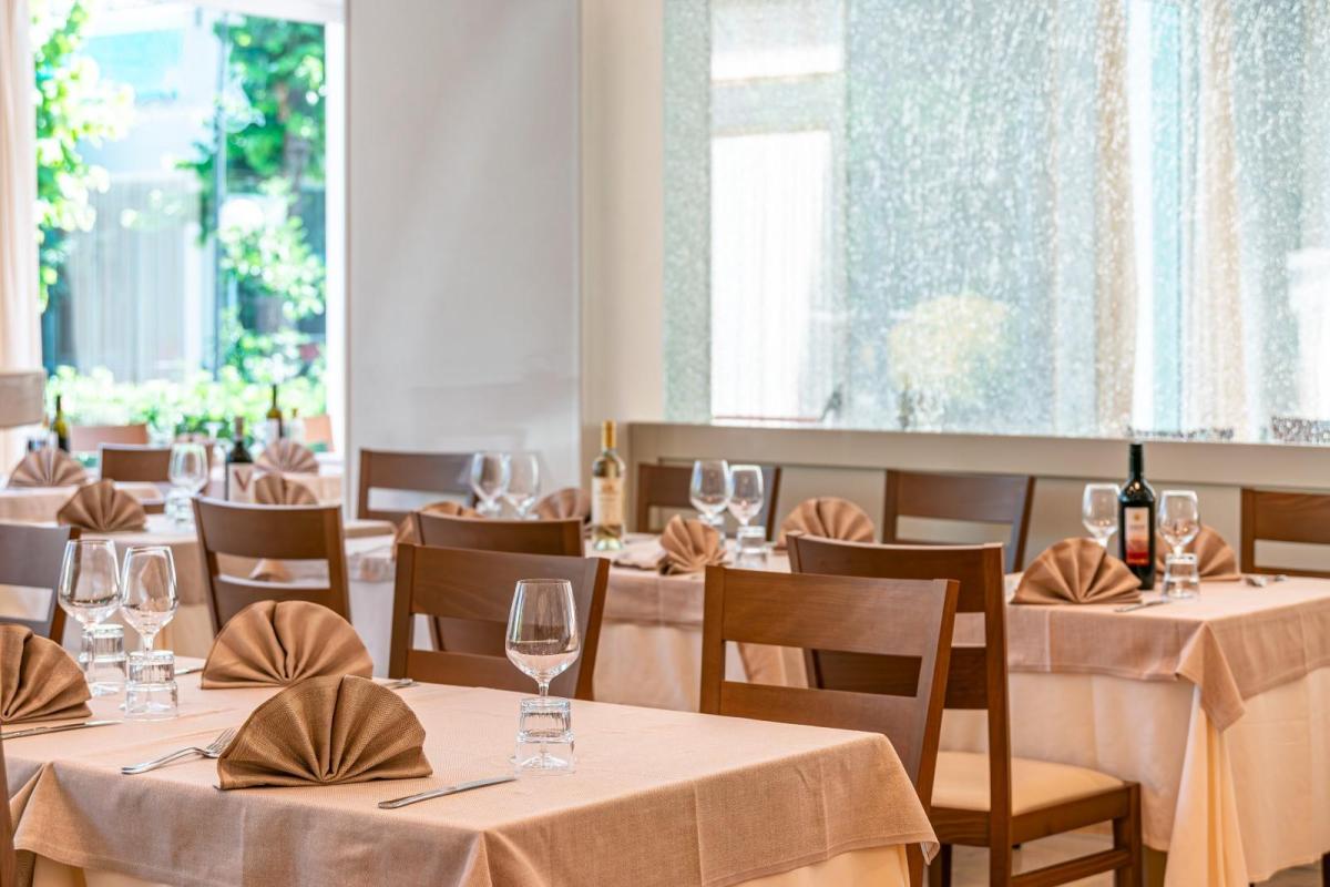 Il ristorante, con servizio al tavolo e orari flessibili, consente di pranzare tra le 12:30 e le 13:30 e di cenare dalle 19:30 alle 20:45, scegliendo il tavolo in sala o in giardino. La cucina propone piatti dai sapori tradizionali, con menù di carne, pesce e vegetariani, garantendo ogni giorno pesce fresco dell'Adriatico e una buona selezione di vini.